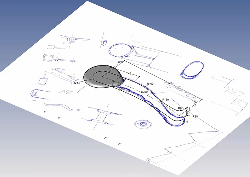 För ett tag sedan fick Protech en fråga från en av sina partners: kan ni konstruera ett handtag från en designskiss? Handtaget skulle först tillverkas som en prototyp och senare i en mindre volym om fem handtag. Den slutgiltiga volymen av tillverkade handtag skulle bli 100 stycken per år. Handtaget behövde vara lätt och därför föreslogs Aluminium.